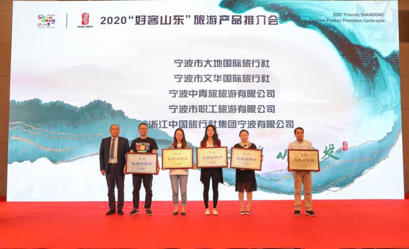 推介会上,山东为5家宁波市旅行社企业代表颁发“优质合作商”奖牌。山东省旅行社协会与宁波市旅行社协会签订战略合作协议,掀开鲁甬两地友好合作新篇章。