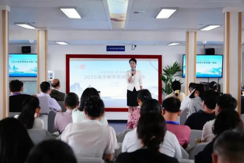 活动期间,与会代表在“寻仙6号”游船上见证了2025山东省海洋研学旅游产品的创新推广,重点推介中国科学院海洋研究所“耕海探洋”海洋科考旗舰营、东方航天港“星潮澎湃”科普奇幻之旅、威海经开区“山海少年 经彩研学”、山东海洋文化旅游发展集团“研学日照 探秘海洋”等独具特色的海洋研学旅游产品。游船抵达长岛后,与会人员共同观摩了长岛研学旅游项目。山东省文化和旅游厅、16市文化和旅游局负责同志,山东省旅行社协会等文旅协会、研学旅游领域专家,研学旅游品质提升试点单位负责同志,及新闻媒体代表,共计120余人参加活动。
