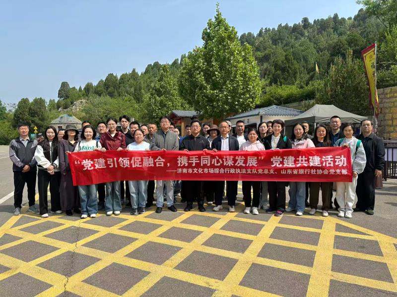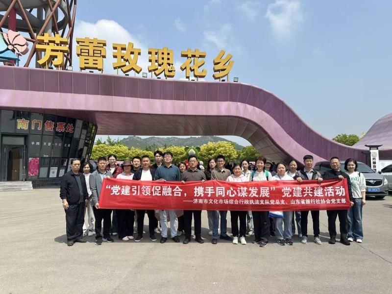 4月23日,山东省旅行社协会与市文化执法支队以“党建引领促融合,携手同心谋发展”为主题组织党员干部前往平阴县,开展了一场以党建为引领、普法为主线的宣传教育共建活动,将党建工作搬到执法服务一线,将法治春风吹进景区、送到游客身边。